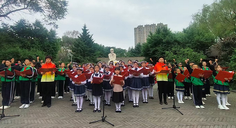 活動(dòng)現(xiàn)場(chǎng),愛樂男聲合唱團(tuán)與哈爾濱市少兒藝術(shù)團(tuán)聯(lián)袂演繹《呼蘭河的小姑娘》《夢(mèng)中的呼蘭河》等改編自蕭紅作品的曲目,童聲清澈與男聲渾厚交織,勾勒出文學(xué)與音樂的百年共鳴。原黑龍江廣播電視臺(tái)播音指導(dǎo)肖霞朗誦《呼蘭河傳》經(jīng)典片段,令現(xiàn)場(chǎng)觀眾仿佛置身于“祖父的后花園”。