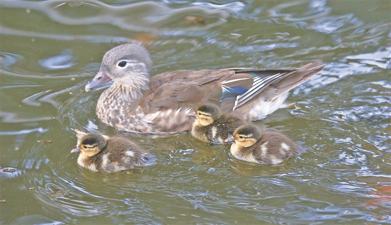 在兆麟公園的鴛鴦湖中,還生活著70只在城區(qū)其他地方出生后,自己跑來或是被愛心市民送來的小鴛鴦。如今,276只小家伙跟著媽媽在湖中四處游蕩、覓食,吸引不少外地游客駐足圍觀。