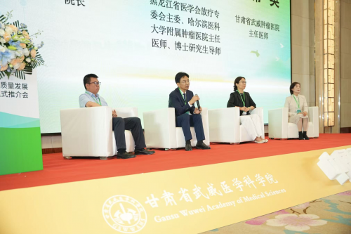 會(huì)議由甘肅省武威腫瘤醫(yī)院副院長(zhǎng)聶蓬主持。會(huì)上,全體與會(huì)人員共同觀看重離子介紹短片;黑龍江省醫(yī)學(xué)會(huì)放療專委會(huì)主委、哈爾濱醫(yī)科大學(xué)附屬腫瘤醫(yī)院主任醫(yī)師、博士研究生導(dǎo)師張?jiān)破G教授致辭;中國南航集團(tuán)文化傳媒股份有限公司領(lǐng)導(dǎo)層經(jīng)營(yíng)班子成員董衛(wèi)軍代表南航傳媒致辭;中國人壽“百萬醫(yī)療+重離子就醫(yī)綠色生命通道”項(xiàng)目負(fù)責(zé)人蔣偉詳細(xì)介紹了“百萬醫(yī)療重離子治療綠色通道”項(xiàng)目;中國南航集團(tuán)文化傳媒股份有限公司全國銷售總監(jiān)陳蘇華介紹了“綠色就醫(yī)航空高品質(zhì)服務(wù)”項(xiàng)目;甘肅省武威腫瘤醫(yī)院院長(zhǎng)葉延程作了題為“重離子建設(shè)及臨床應(yīng)用五周年現(xiàn)狀”的主題報(bào)告,全面分享了重離子治療技術(shù)的建設(shè)成果與臨床應(yīng)用實(shí)踐情況。