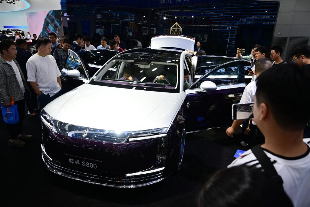 9月20日,觀眾在2025世界制造業(yè)大會上參觀體驗一款新能源汽車。新華社記者 周牧 攝
