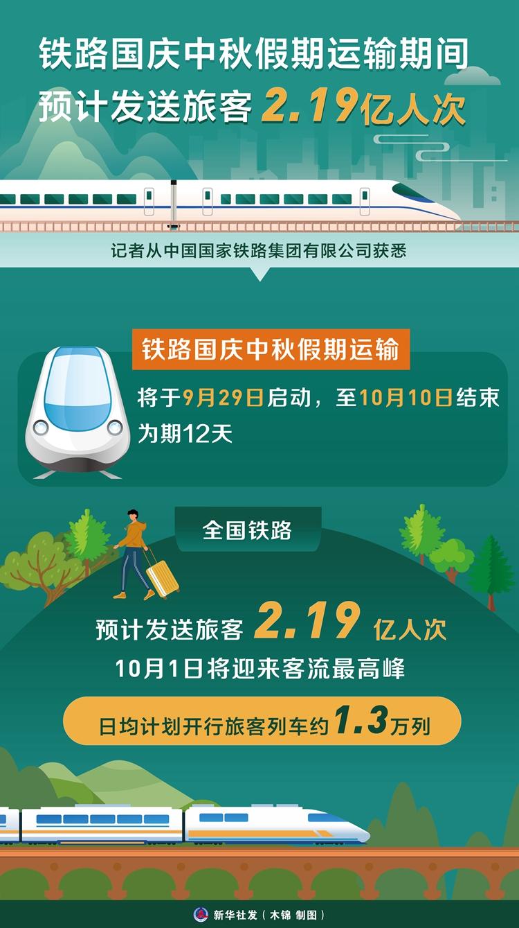 鐵路國慶中秋假期運(yùn)輸期間預(yù)計(jì)發(fā)送旅客2.19億人次