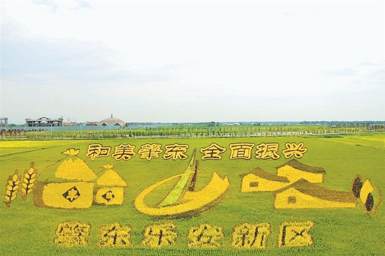 樂安新區(qū)的稻田畫從5月份開始插秧制作,進(jìn)入7月份呈現(xiàn)出最佳觀賞效果,觀賞期將持續(xù)至10月份?!八境墒熘两瘘S色,稻田畫更漂亮,有另一種詩情畫意的自然美。”附近鄉(xiāng)鎮(zhèn)五湖村曲家屯農(nóng)戶李建國說。