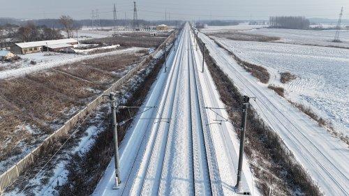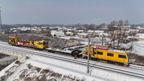 哈伊高鐵鐵伊段地處黑龍江省東北部伊春市境內,是該區(qū)域銜接外部高等級交通網(wǎng)絡的重要紐帶。線路正線長度約111.351公里,全線規(guī)劃建設車站3座、中繼站4座,改建既有站1座(鐵力站),設計旅客列車時速250公里。其中,中鐵電氣化局集團承建的站后四電接觸網(wǎng)工程,支柱組立4645根、腕臂安裝5572組、吊柱安裝103根,架設承力索及接觸線297.52條公里、附加線223.98條公里、供電線18.18條公里。每一組數(shù)據(jù)的背后,都是參建團隊對工程質量的嚴苛把控與對建設進度的高效推進。