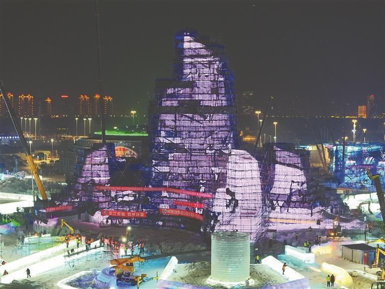 作為目前全球規(guī)模最大的冰雪主題園區(qū),本屆哈爾濱冰雪大世界總用冰量、用雪量雙雙刷新紀(jì)錄。施工現(xiàn)場(chǎng),上萬(wàn)名來(lái)自龍江安裝集團(tuán)的建設(shè)者在低溫中晝夜奮戰(zhàn),18個(gè)冰建工區(qū)、5個(gè)雪建工區(qū)同步推進(jìn),園區(qū)建設(shè)已完成70%。