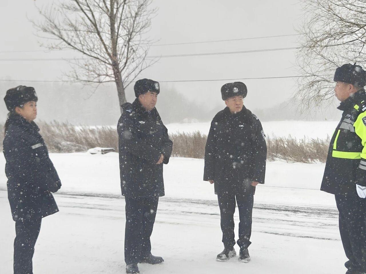 在各執(zhí)勤現(xiàn)場,王秀東一行詳細詢問警力部署、路面通行、交通疏導、應急物資儲備及隱患整改等工作落實情況,對全體執(zhí)勤人員頂風雪、冒嚴寒堅守崗位的擔當精神給予充分肯定,同時反復叮囑大家做好自身防寒保暖和執(zhí)勤安全防護,切實保障自身安全。