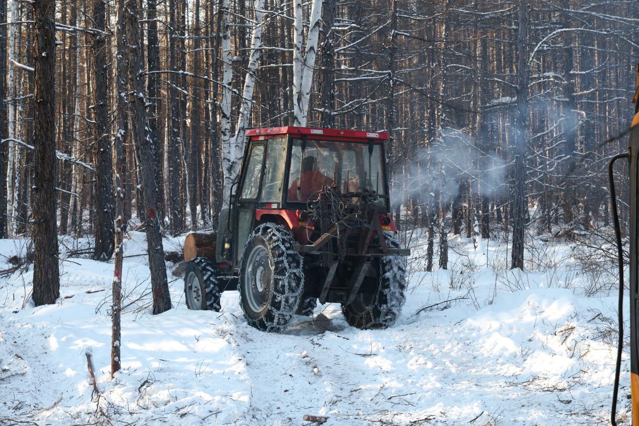 阿木爾林業(yè)局職工駕駛拖拉機向作業(yè)場地駛?cè)ィㄍ趿?攝)