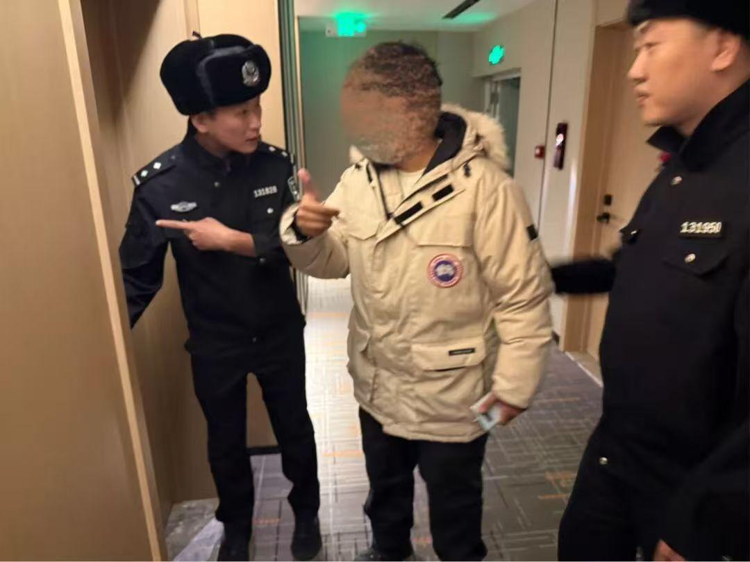 當(dāng)日凌晨,一名外籍男士來到五大連池市公安局青山派出所求助。民警發(fā)現(xiàn)其處于醉酒狀態(tài),言語含糊。雙方因語言不通無法順暢溝通,為弄清情況,民警先引導(dǎo)男子出示護(hù)照,核實(shí)其為突尼斯籍來此旅游的游客。隨后,男子通過手機(jī)翻譯軟件結(jié)合手勢,大致描繪出其核心訴求:當(dāng)晚用餐后,因醉酒迷失方向,無法找到入住的酒店,深夜身處陌生環(huán)境,只好向警方求助。民警一邊通過翻譯軟件耐心安撫其情緒,一邊根據(jù)他模糊描述的酒店相關(guān)特征快速核查,很快鎖定具體位置。考慮到游客醉酒且不熟悉路線,為保障其安全,民警驅(qū)車將其平穩(wěn)送至酒店。
