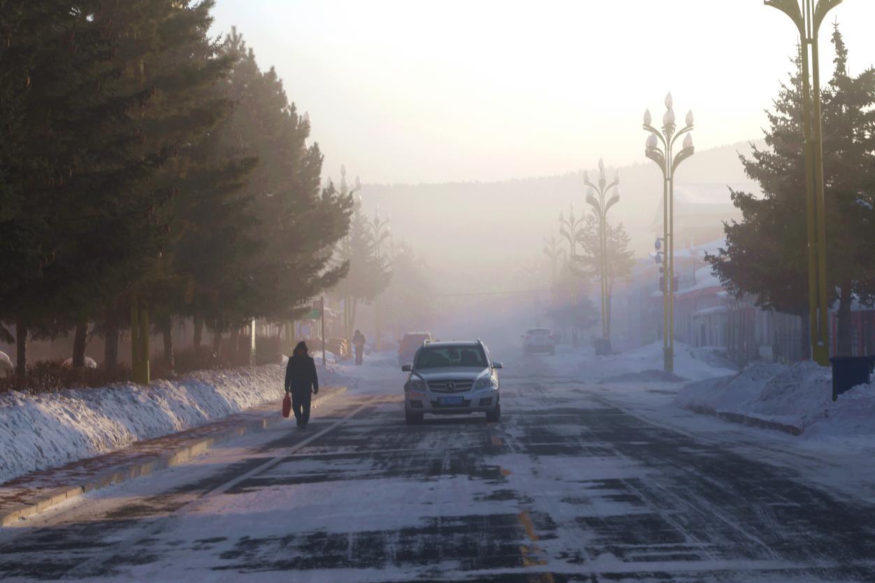 時至上午9時,依舊寒氣逼人。遠山、河流被白霧籠罩,若隱若現(xiàn),銀裝素裹宛如冰雪仙境。戶外寒風刺骨,行人出門便感到如針扎般的刺痛,呵氣成霜、滴水成冰。