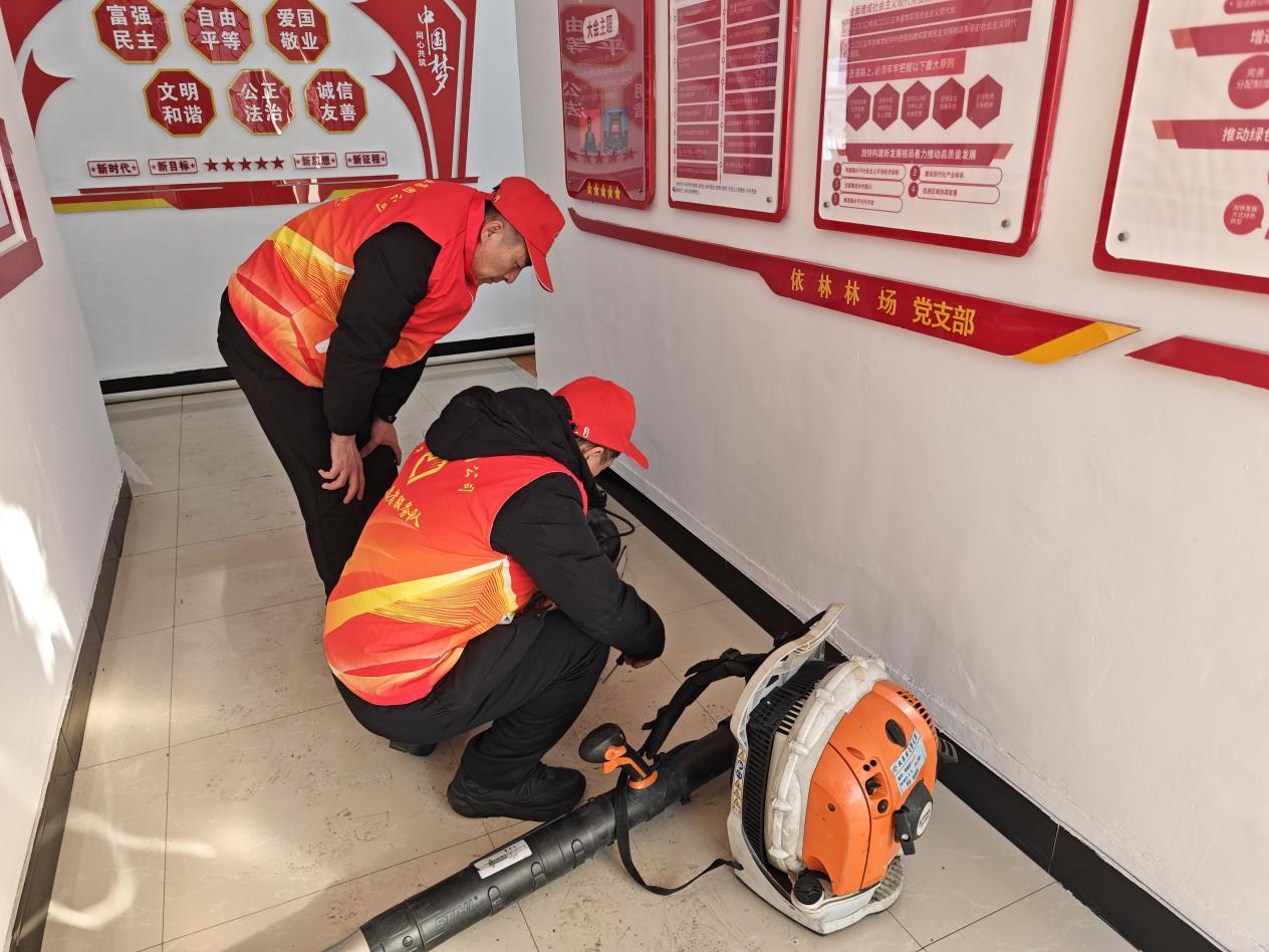 聚焦環(huán)境整治提升,推進(jìn)美麗林場(chǎng)建設(shè)。志愿者對(duì)林場(chǎng)辦公室、管護(hù)站等重點(diǎn)區(qū)域開(kāi)展清雪打掃、環(huán)境清潔,全面改善辦公環(huán)境,以整潔有序的面貌保障日常工作開(kāi)展,讓志愿服務(wù)成為美化場(chǎng)區(qū)、服務(wù)一線的生動(dòng)實(shí)踐。