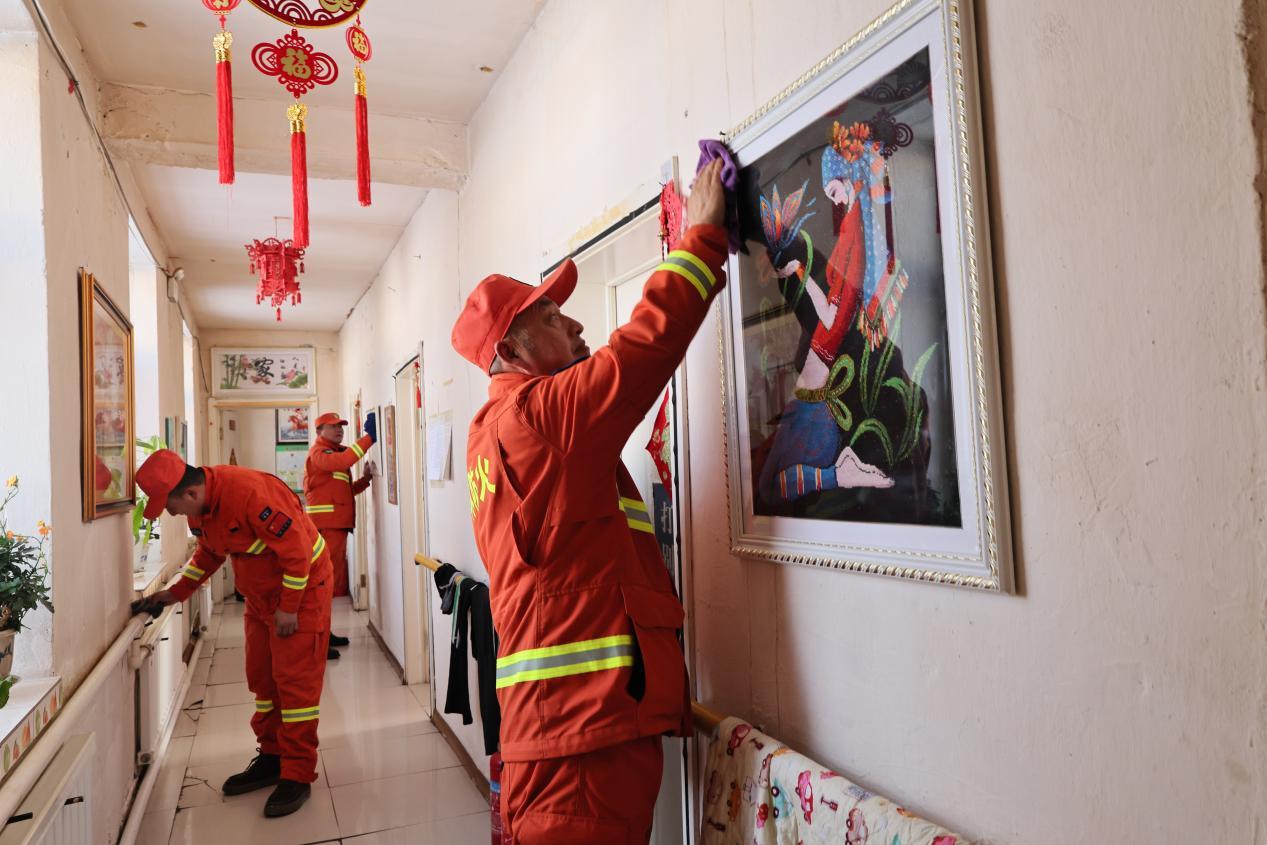 室外干勁十足,室內(nèi)溫情融融。志愿者們有的與老人促膝長談、嘮起家常,詳細詢問身體狀況和生活需求;有的拿起掃帚、抹布,細致清掃地面、擦拭門窗,把房間收拾得整潔明亮,用貼心服務(wù)溫暖老人心田。