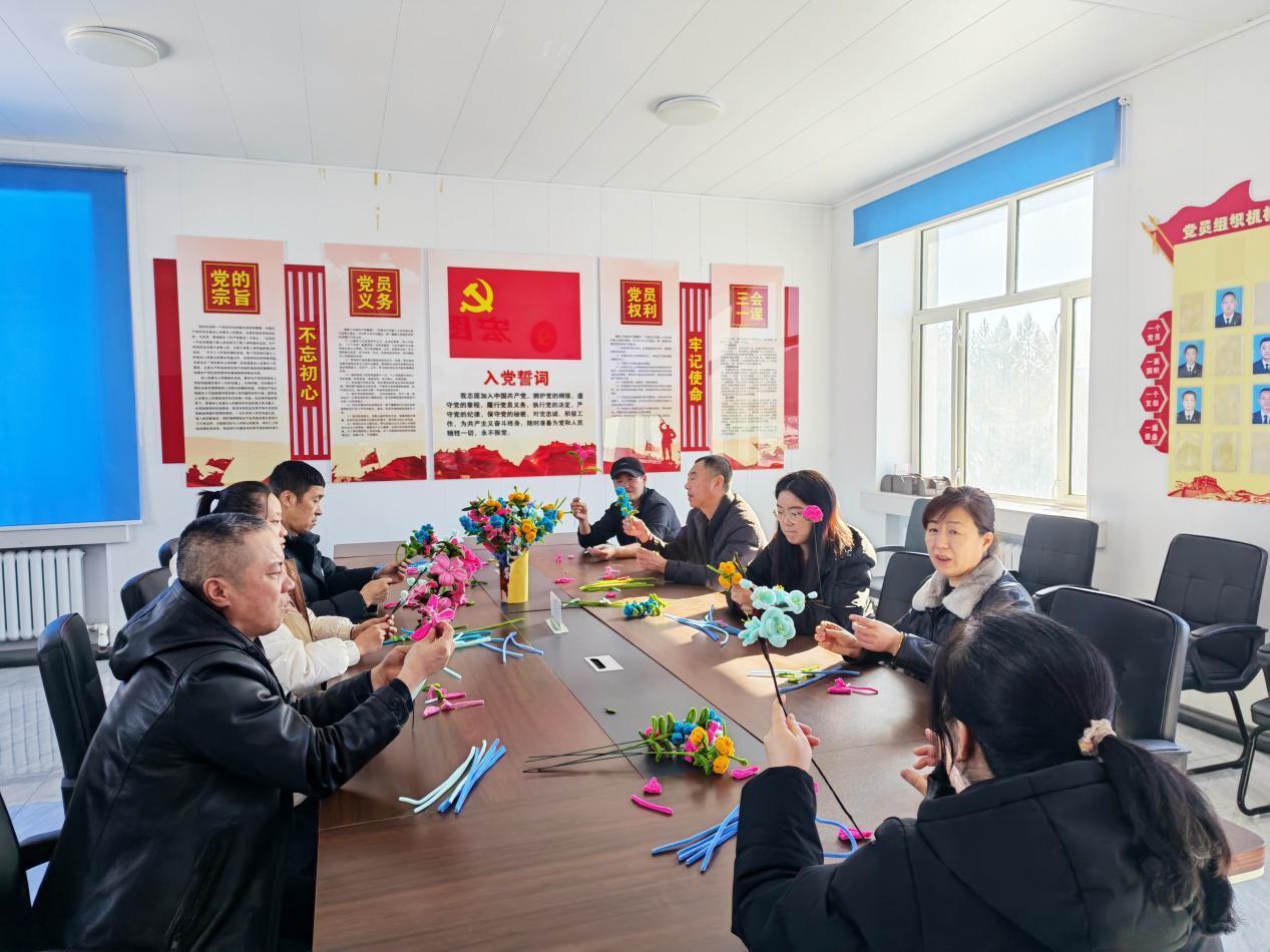 活動現(xiàn)場,大家認(rèn)真聆聽專業(yè)人員講解野生興安杜鵑、野生藍莓等本土植物保護的相關(guān)知識。隨后,通過觀看教學(xué)視頻系統(tǒng)地學(xué)習(xí)扭扭棒基礎(chǔ)造型技巧,在動手實踐中加深對野生植物的保護與認(rèn)知。實操環(huán)節(jié),職工們圍坐一堂、相互切磋,指尖翻飛間,一根根彩色扭扭棒被巧妙彎折、組合,化作栩栩如生的野生興安杜鵑、飽滿圓潤的藍莓果束等精美手工作品。作品展示環(huán)節(jié),大家踴躍分享創(chuàng)作靈感、交流制作心得,集體合影定格溫馨瞬間,現(xiàn)場氛圍輕松融洽、其樂融融,充分展現(xiàn)出林場職工昂揚向上、心靈手巧的良好精神風(fēng)貌。