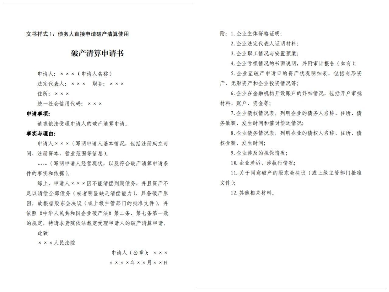 當(dāng)事人可對(duì)照范本直接填寫,有效解決因不熟悉文書格式導(dǎo)致的信息不全、表述不規(guī)范等問題,大幅降低破產(chǎn)申請(qǐng)門檻與準(zhǔn)備成本。