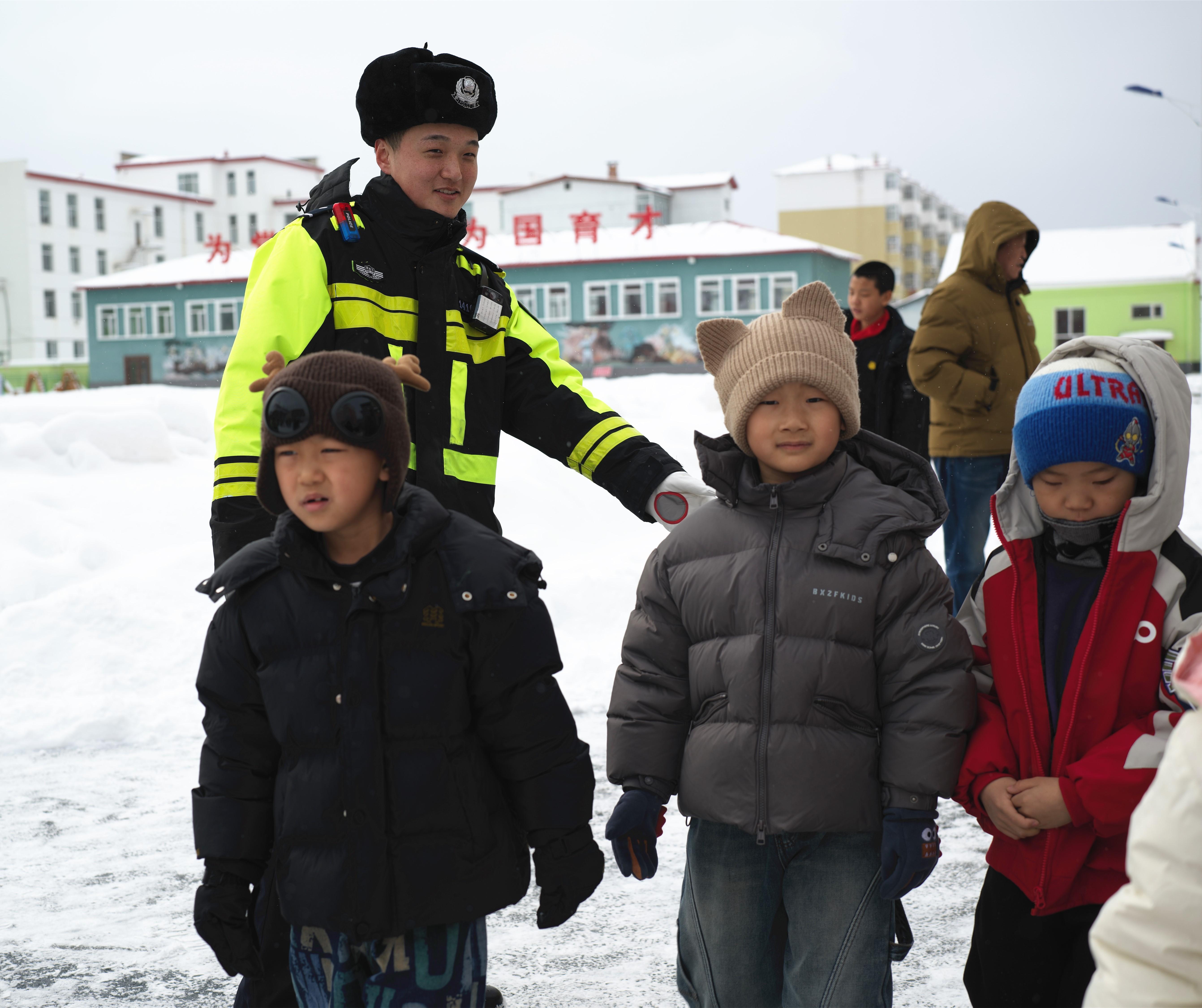 校園周邊的護學崗上,暖心的聲音在風雪中格外清晰?!靶∨笥?,慢慢走,小心滑倒!”“家長您好,即停即走,車輛請快速通過!”校園周邊護學崗準時到崗,民警在雪中引導學生安全過街、護送過馬路,同步向?qū)W生面對面普及雨雪天行走安全常識,用暖心守護為孩子們撐起“平安傘”。