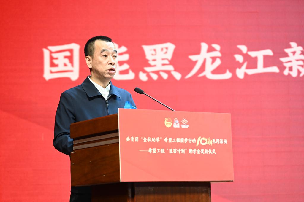 國能黑龍江新能源有限公司黨委書記、執(zhí)行董事遲鳳亮發(fā)言。他表示:“履行央企社會(huì)責(zé)任、傳遞社會(huì)溫暖是企業(yè)的初心與擔(dān)當(dāng),未來,國能黑龍江新能源有限公司將繼續(xù)踐行央企責(zé)任,一如既往地支持希望工程事業(yè),關(guān)注青年成長,與社會(huì)各界一道,共同為龍江全面振興全方位振興貢獻(xiàn)力量。”