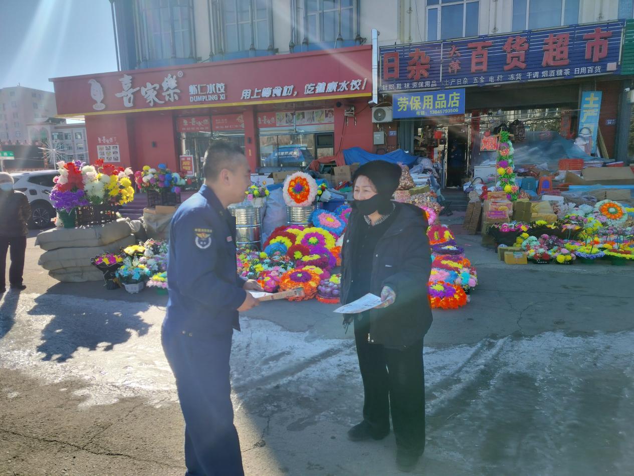 隨后,宣傳小隊(duì)深入廣場(chǎng)周邊及街巷內(nèi)多家專門(mén)售賣香燭、紙錢(qián)等傳統(tǒng)祭祀用品的店鋪。宣傳人員以“安全提示員”和“知識(shí)傳播者”的身份,向店主和顧客進(jìn)行精準(zhǔn)科普。他們?cè)敿?xì)講解了易燃祭祀用品在儲(chǔ)存、銷售環(huán)節(jié)的注意事項(xiàng),以及一旦發(fā)生火情的初期處置方法,并懇請(qǐng)商戶在銷售時(shí)主動(dòng)對(duì)顧客進(jìn)行一句安全提醒,共同當(dāng)好防火“前哨”。