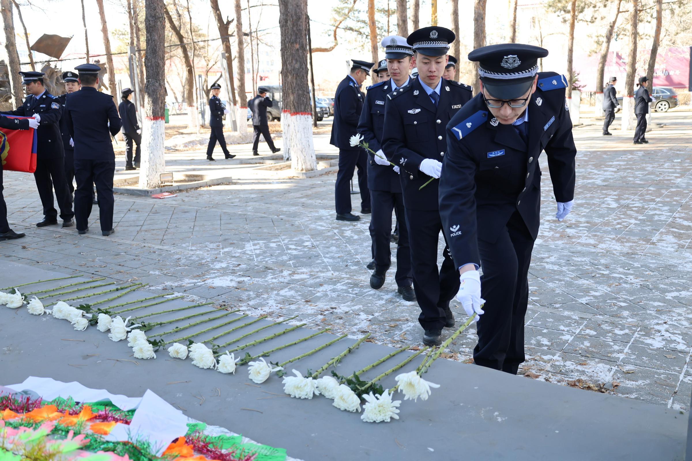 全體民輔警身著規(guī)范警服,精神抖擻、隊(duì)列整齊,懷著無比崇敬的心情肅立在紀(jì)念碑前,整個(gè)現(xiàn)場(chǎng)氛圍莊重而肅穆。