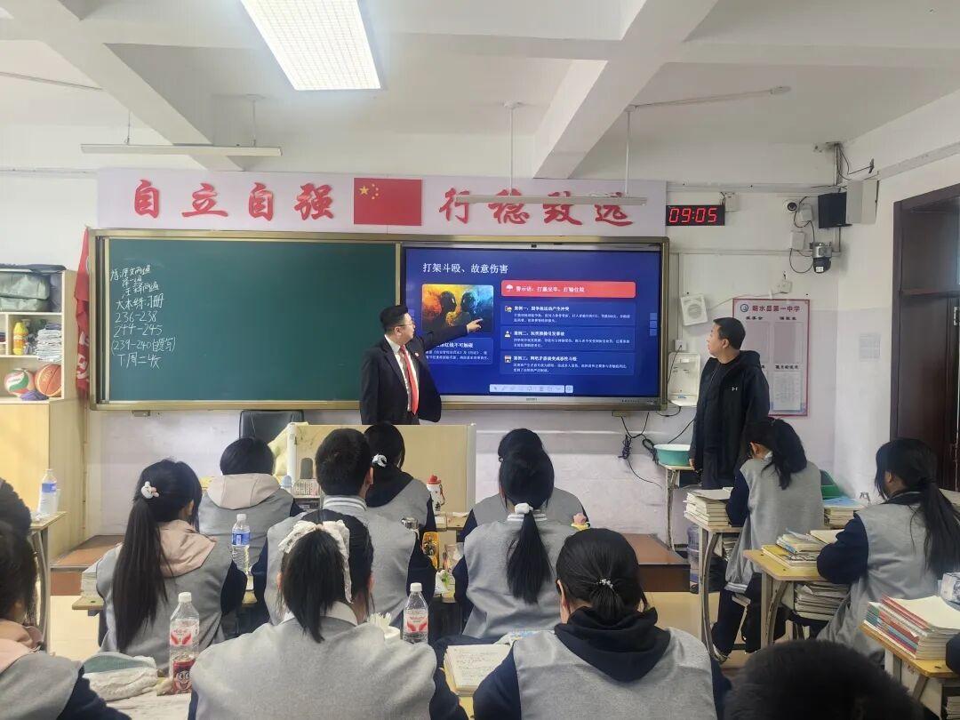 黑龍江經(jīng)濟(jì)網(wǎng)訊(董慧瑩 趙世奇)為進(jìn)一步延伸司法服務(wù)職能,從源頭預(yù)防青少年違法犯罪,近日,明水縣人民法院法官、明水一中法治副校長(zhǎng)趙世奇走進(jìn)明水縣第一中學(xué)校園,為全校學(xué)生開(kāi)展了一場(chǎng)形式多樣、內(nèi)容豐富的法治教育系列活動(dòng)?;顒?dòng)采取“集中廣播宣講+進(jìn)班級(jí)互動(dòng)講解”的分層授課模式,旨在增強(qiáng)學(xué)生法治觀念和自我保護(hù)意識(shí),有效預(yù)防校園欺凌與青少年違法犯罪,助力營(yíng)造安全、文明、和諧的校園育人環(huán)境。明水一中副校長(zhǎng)陳朋主持本次活動(dòng)。
