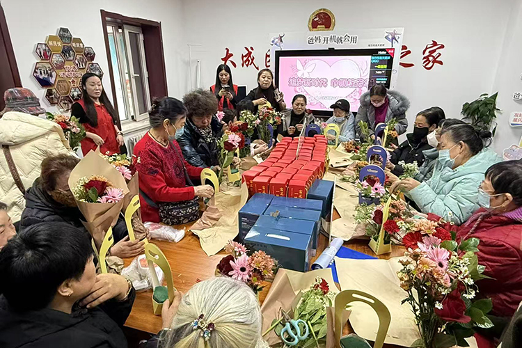 哈市南崗區(qū)大成街道新吉社區(qū)開展“情暖三月·花漾巾幗”主題插花活動